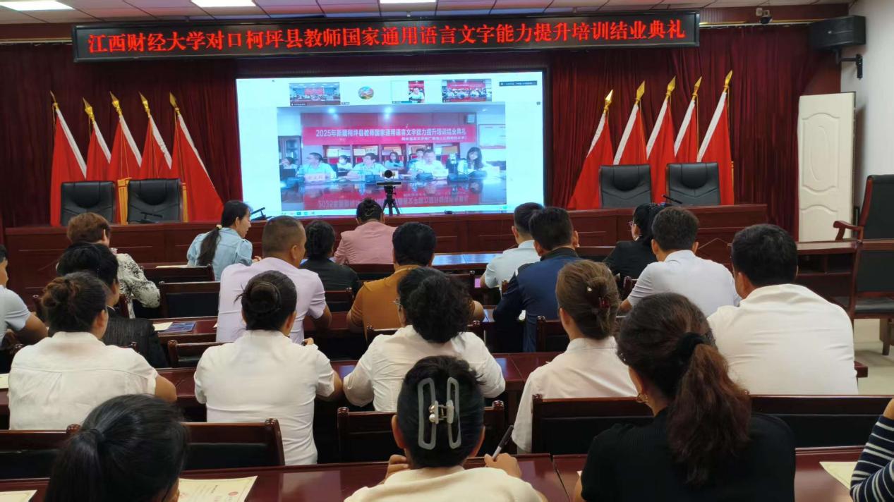 结业典礼同步在线举行,我校杏吧传媒 院长蒋国河、党委书记陈华,柯坪县人民政府党组成员、教育局党组书记陈婷,柯坪县青少年宫主任王彩蓉,柯坪县教育局语言文字办全体干部,我校培训教师、助教团队及 50 名柯坪县中小学参训教师共同参会。典礼由陈华主持。