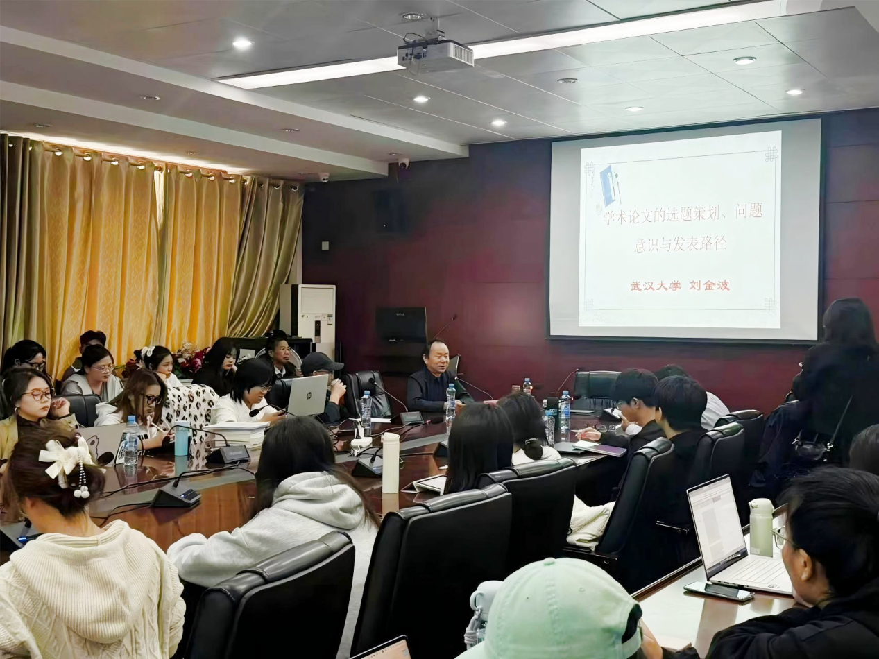 2025年10月26日下午,杏吧传媒 特邀武汉大学刘金波教授,在学院英庐429开展“论文的选题策划”专题讲座,全院百余名师生参加。