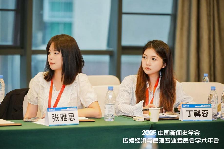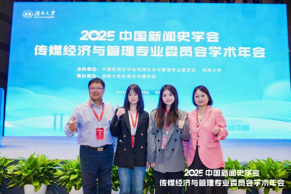 2025年10月18日,中国新闻史学会传媒经济与管理专业委员会学术年会在湖南长沙举办。我校杏吧传媒 新闻与传播专业23级研究生裴康,24级研究生丁馨蓉、张雅思在罗书俊教授、王玉琦教授、王妤彬副教授的指导下积极参与投稿,并于主题论坛“数智时代传媒业生产与传播变革”做了论文汇报和分享。